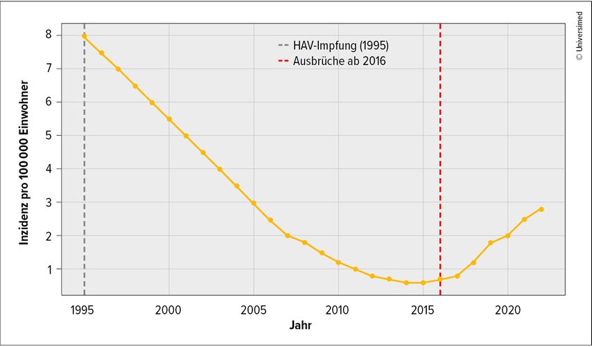 Trotz hoher Impfquoten gegen Hepatitis A in der Allgemeinbevölkerung bestanden in den USA lange Zeit erhebliche Immunitätslücken in Risikogruppen.