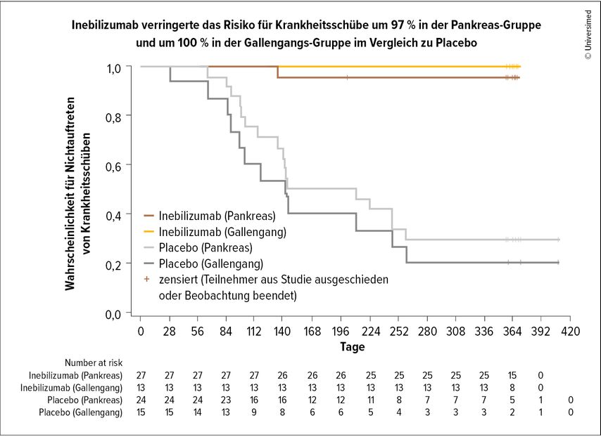 Eines der Highlights am EASL Congress 2025 war der «postgraduate course» zum Thema autoimmune und cholestatische Lebererkrankungen. Besprochen wurde unter anderem die IgG4-assoziierte Erkrankung als weiterhin herausforderndes Erkrankungsbild, dessen Diagnose und Management einen multidisziplinären Ansatz erfordern. Hervorzuheben ist hier Inebilizumab, ein gegen CD19-positive B-Zellen gerichteter monoklonaler Antikörper, der basierend auf den Ergebnissen der am Kongress präsentierten Phase-III-Studie MITIGATE kürzlich als erstes Medikament zur Therapie der IgG4-assoziierten Erkrankung (IgG4-RD) von der FDA zugelassen wurde (Abb.1).1 «Das ist definitiv ein therapeutischer Duchbruch in der Induktion einer steroidfreien Remission der Erkrankung», so Prof. Michael Trauner, Wien.