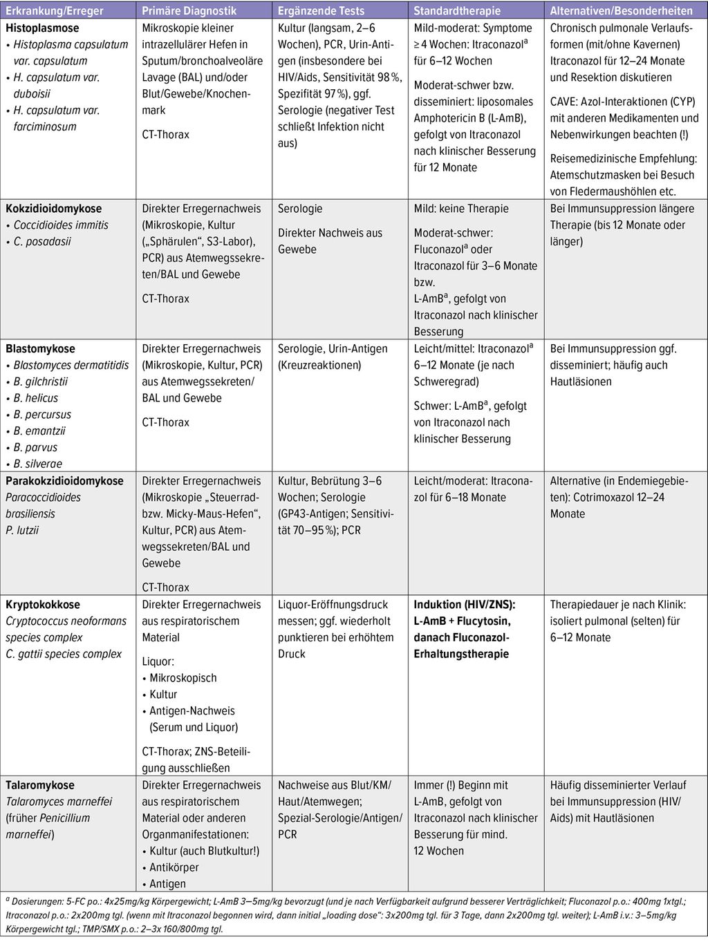 Unter den endemischen Systemmykosen sind v.a. Histoplasma, Coccidioides, Blastomyces und Paracoccidioides von klinischer Bedeutung.
