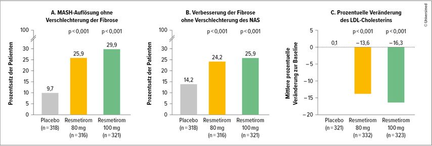 In der Indikation metabolisch bedingte Lebersteatose bzw. Steatohepatitis scheiterten über viele Jahre zahlreiche Therapieversuche. Seit Kurzem stehen erstmals wirksame und zugelassene Therapien zur Verfügung. Als effektiv erwiesen haben sich Substanzen aus der Gruppe der GLP-1-Rezeptor-Agonisten sowie Resmetirom, ein selektiver Agonist am Schilddrüsenhormonrezeptor β.