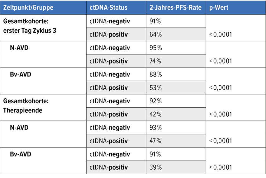 Die Autor:innen dieser Analyse sind der Ansicht, dass ihre Ergebnisse den potenziellen Einsatz der ctDNA als einen integralen Biomarker in einer ctDNA-Response-adaptierten klinischen Studie beim fortgeschrittenen cHL unterstützen.