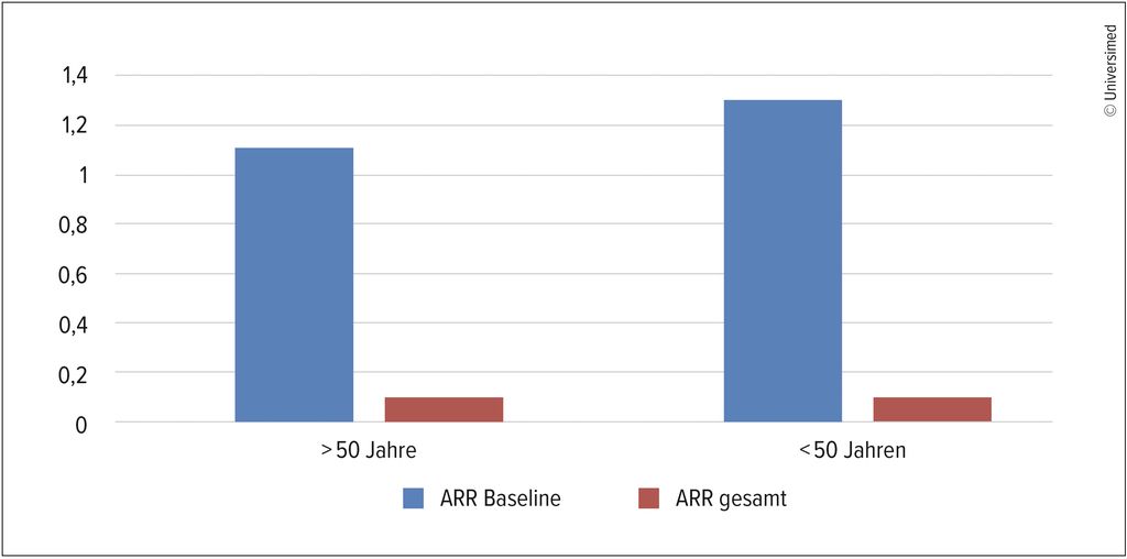 Abb. 1: MS-Patient:innen in Österreich unter und über 50 zeigen eine gleich niedrige jährliche Schubrate von 0,1