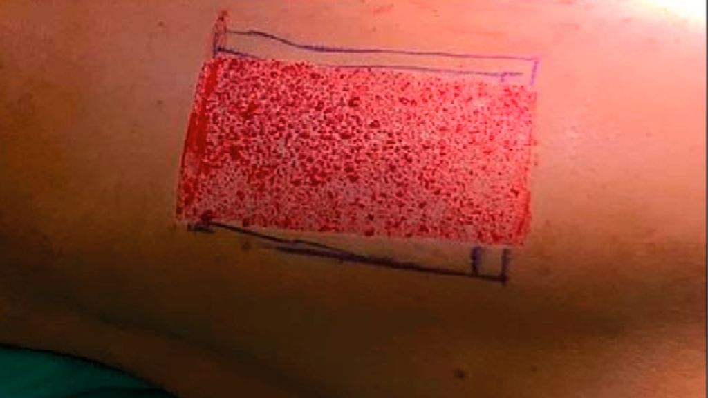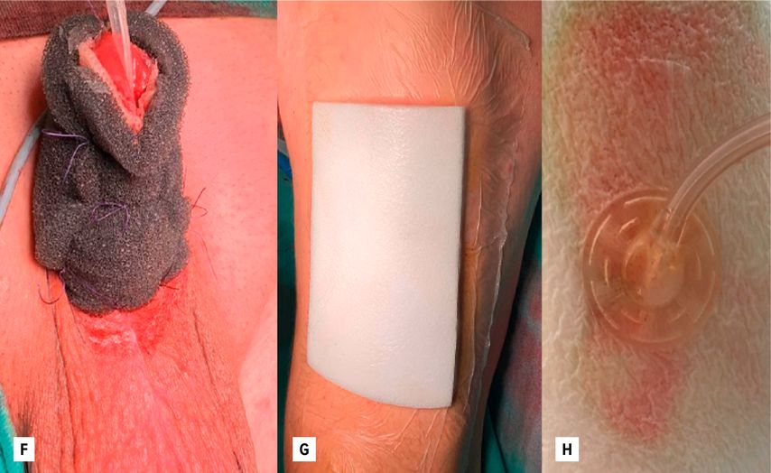 Nach der operativen Versorgung ist eine adäquate Wundbehandlung entscheidend für ein zufriedenstellendes postoperatives Ergebnis. Der VAC-Verband spielt hierbei eine wichtige Rolle, da er sowohl als sog. „Tie-over“-Verband am penilen Rekonstruktionsareal als auch an der Hautentnahmestelle die Wundheilung unterstützt, indem er die Granulationsgewebsbildung fördert und ein optimales Wundmilieu schafft (Abb.2).