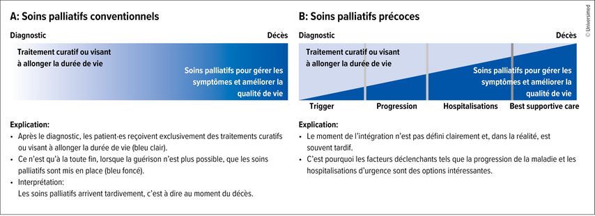 Fig.1: Dans la réalité, les soins palliatifs sont encore souvent intégrés trop tard dans le processus thérapeutique