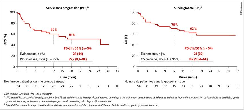 Des progrès ont également été réalisés en ce qui concerne le mode d’application des immunothérapies: dans l’étude dephaseIII MK-3475A-D77, le pembro sous-cutané (SC) – formulé avec de la hyaluronidase – a été comparé à l’administration intraveineuse (IV) traditionnelle. Les données présentées à l’ELCC révèlent la non-infériorité pharmacocinétique de la forme SC.8 L’efficacité et la sécurité étaient également comparables: l’ORR était de 45,4% (SC) vs 42,1% (IV), la PFS médiane de 8,1 vs 7,8mois. Les effets indésirables graves étaient aussi fréquents dans les deux groupes (environ 47%).