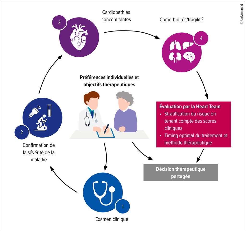 Elles soulignent l’importance d’une approche multidisciplinaire axée sur les patient·es (mot-clé: Heart Team) et d’une prise de décision personnalisée (Fig. 1).