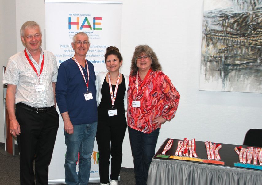 Comité d’HAE-Vereinigung Schweiz. De gauche à droite: Marcel Bühlmann (trésorier), Ernst Greber (vice-président), Jennifer Wyss (Social media), Helene Saam (présidente)