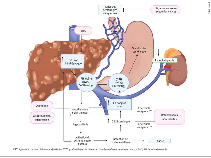 L’objectif du traitement des situations chroniques est de prévenir les complications de l’hypertension portale.