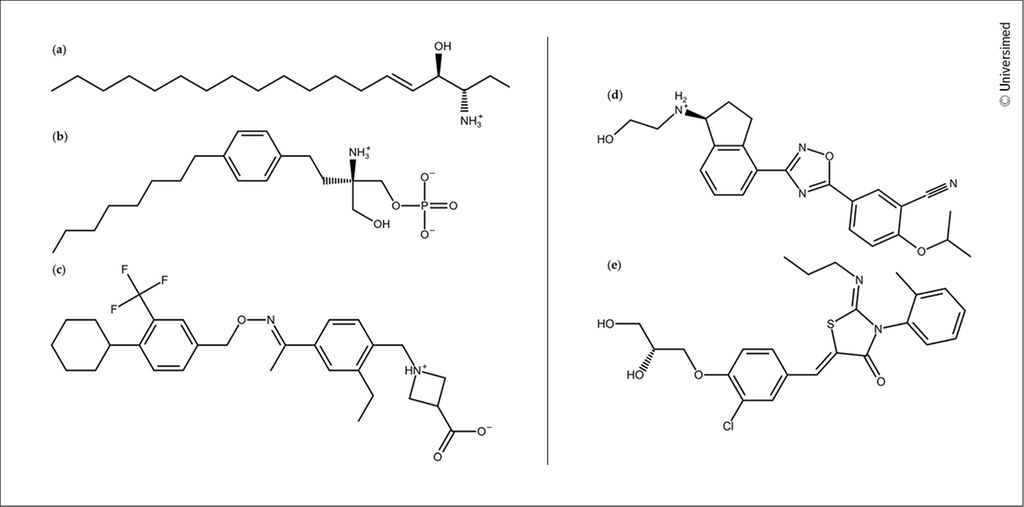 1 Coyle PK et al.: Sphingosine 1-phosphate receptor modulators in multiple sclerosis treatment: a practical review. Ann Clin Transl Neurol 2024; 11(4): 842-855 2 Kores K et al.: Computational analysis of S1PR1 SNPs reveals drug binding modes relevant to multiple sclerosis treatment. Pharmaceutics 2024; 16(11): 1413