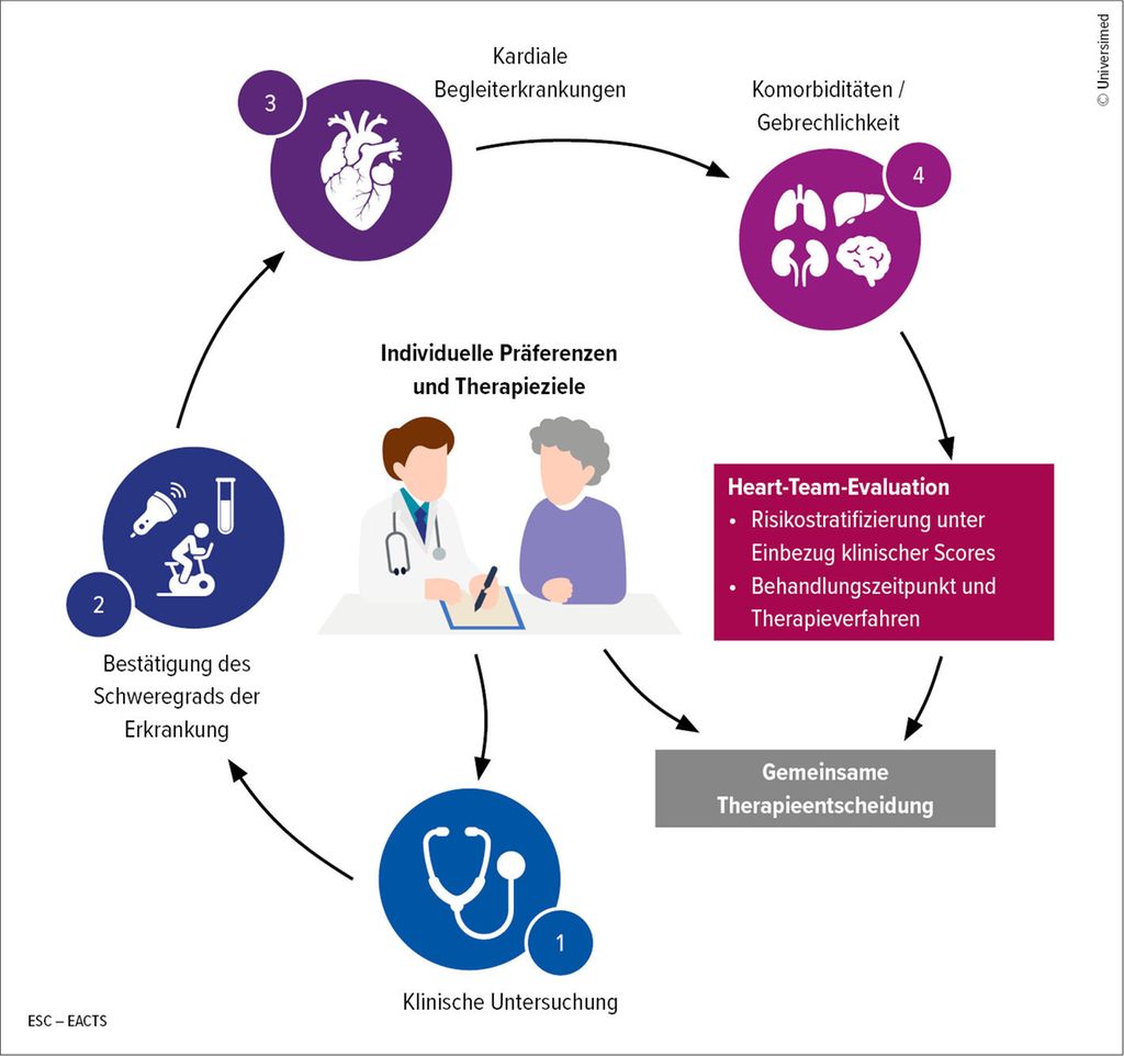 Sie betonen die Bedeutung eines multidisziplinären, patientenzentrierten Ansatzes (Stichwort Heart-Team) und einer individualisierten Entscheidungsfindung (Abb. 1).