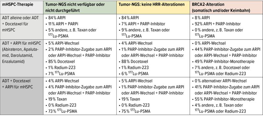 Exemplarisch kann das Gebiet der sequenziellen systemischen Therapie bei fortgeschrittenem Prostatakarzinom hier angeführt werden. Die Wahl der Erstlinientherapie in der metastasierten kastrationsresistenten Situation (mCRPC) berücksichtigt die bereits durchgeführten Therapien im metastasierten hormosensitiven Krankheitsstadium (mHSPC).