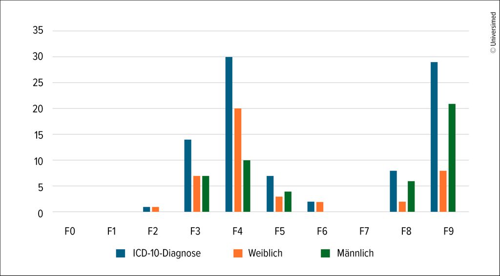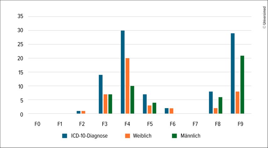 Die Evaluation der in der AoM-Fachsprechstunde vorgestellten Patient:innen aus der Region Luzern zeigte – entgegen manchen Vermutungen und Befürchtungen – überwiegend hochkomplexe ambulante Behandlungsfälle. Häufig lagen Mehrfachdiagnosen vor, die in den meisten Fällen eine längerfristige psychotherapeutische Behandlung erforderten. Ein grosser Teil der Patient:innen war zuvor stationär oder teilstationär behandelt worden. Dominierend waren Diagnosen aus den Gruppen F3, F4 und F9. Entgegen der Erwartung spielten sogenannte «Modediagnosen» wie die posttraumatische Belastungsstörung oder die Autismus-Spektrum-Störung in diesem Setting eher eine untergeordnete Bedeutung.