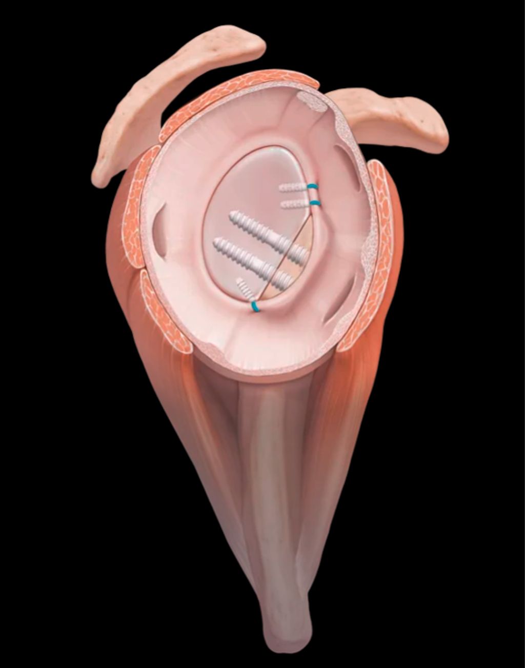 Offene Verfahren mit Schraubenosteosynthese zeigen gute mittel- und langfristige Ergebnisse hinsichtlich Stabilität und Funktion. Sie sind aber ziemlich invasiv, da oft die Ablösung der Subscapularissehne notwendig ist, um das Glenoid darzustellen.